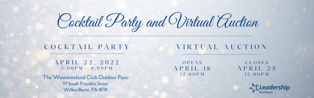 You’re invited to join Leadership Northeast friends and alumni at our Cocktail Party on Friday, April 22 at the Westmoreland Club and enjoy participating in our first Virtual Auction. We’ll have many unique items and experience available.